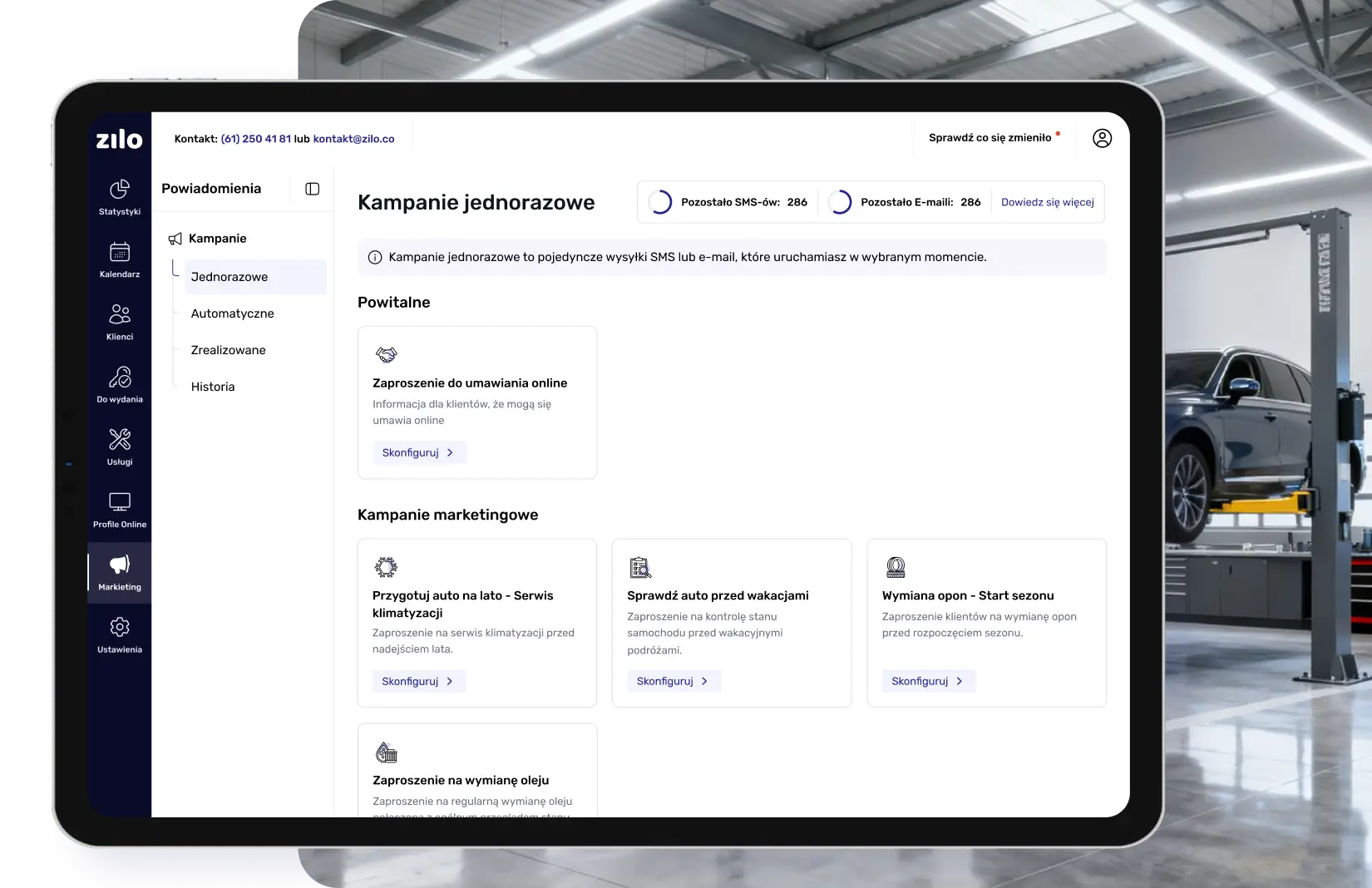 Wysyłaj kampanie i przypomnienia do swojej bazy klientów. Zwiększ liczbę powracających wizyt bez dodatkowej pracy.